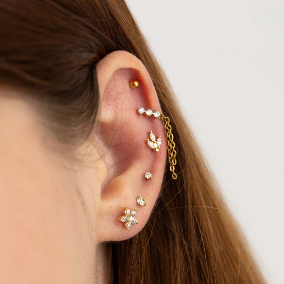 Parte a corpului: Tragus, Spiderbite, Snakebite, Medusa, Madonna, Labret inferior, Lobul urechii, Helix, Conch, Forward helix, Angelbite