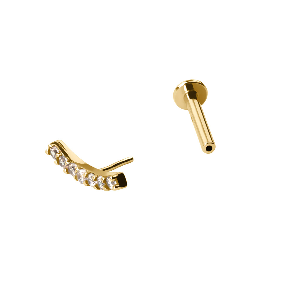 Labret push-in din aur de 14k cu pietre de zirconiu și capăt arcuit
