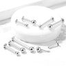 Labretul prezentat aici are o grosime de 16g (1.2 mm) și este disponibil într-o varietate de lungimi și diferite mărimi ale bilei. Cu alte cuvinte, ai la dispoziție o mulțime de opțiuni pentru a-ți găsi labretul perfect. Labretele se potrivesc bine în piercing-urile de buză sau ureche datorită spatelui plat.