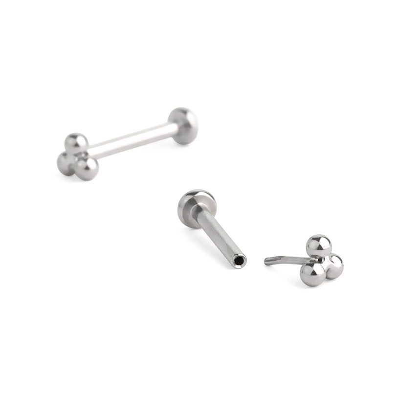 Labret push-in din titan cu vârf din trei bile grupate în formă de triunghi