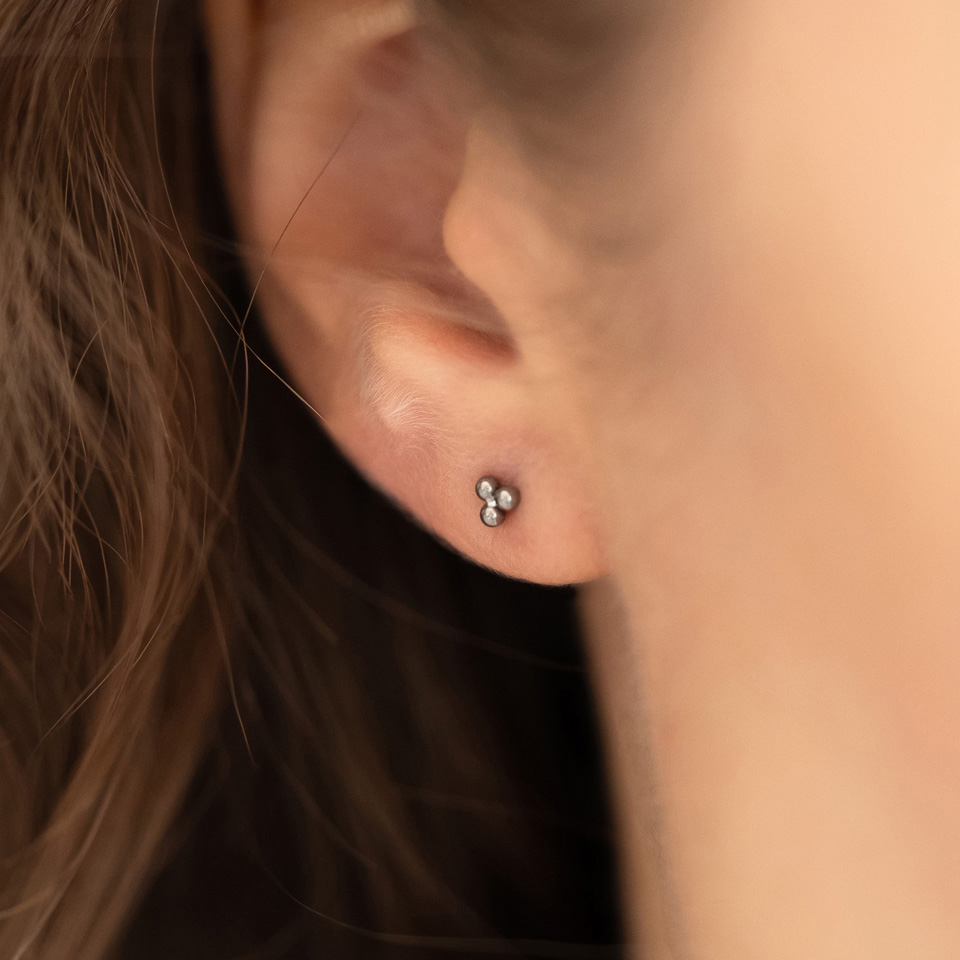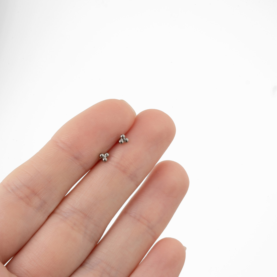 Labret push-in din titan cu vârf din trei bile grupate în formă de triunghi