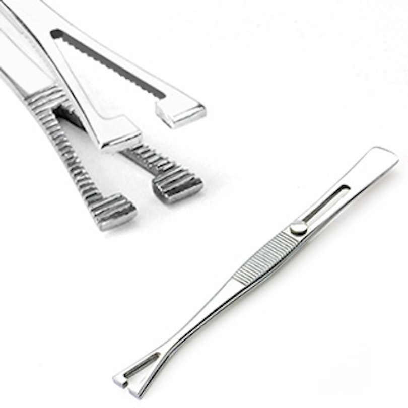 Aceasta este o ustensilă esențială pentru piercerii profesioniști, mulțumită capătului crestat cu care se inserează acul.
