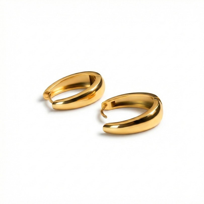 Cauți cercei hoops mai speciali? Iată o pereche de cercei hoops ovali. Fabricați din oțel chirurgical, îi poți avea în varianta clasică, argintie, sau aurie.