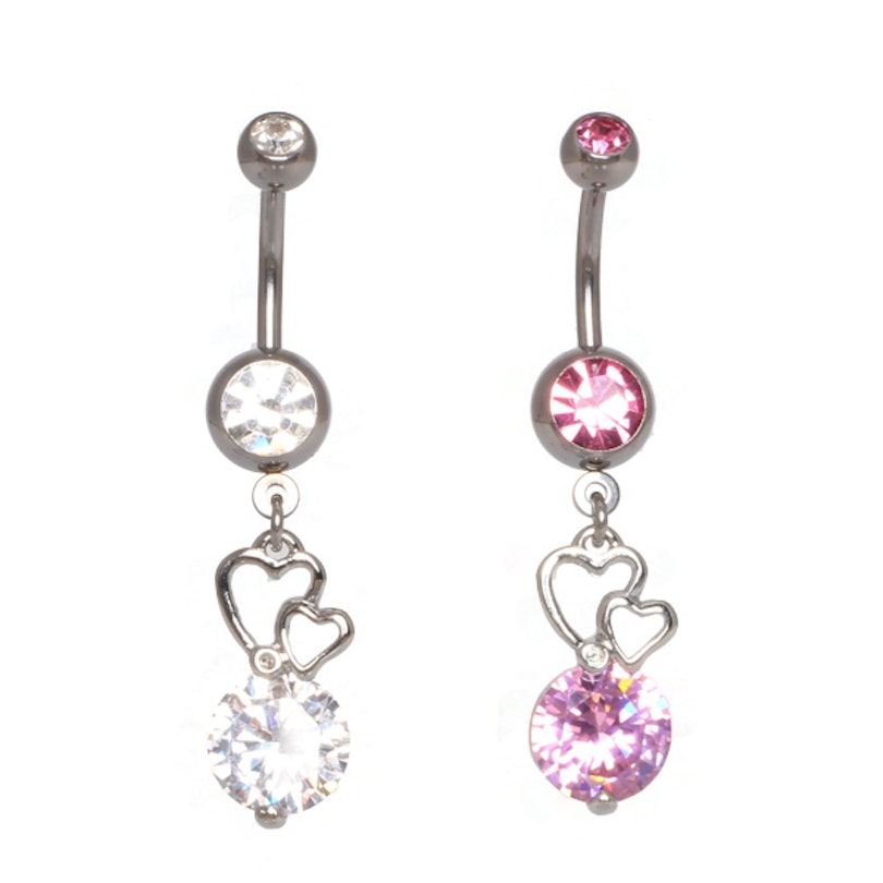 Nume: Piercing de buric cu inimioare si un cristal mare