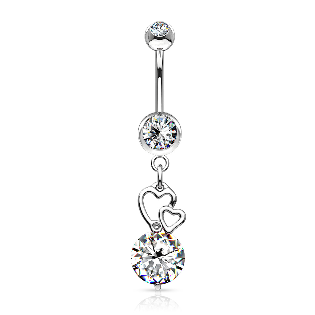 Cumpară acest cercel de buric fabulos cu două inimi și o piatră mare.