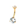 Dacă îți plac piercing-urile de buric cu pietre mari, te afli în locul potrivit. În poza de mai sus poți vedea un piercing de buric creat din oțel chirugical, acoperit cu diferite straturi în diferite culori. Bilele din ambele capete au pietre de zirconiu frumoase, tăiate din diferite unghiuri, ceea ce garantează că lumina va pătrunde și ele vor străluci ca nimeni altele.