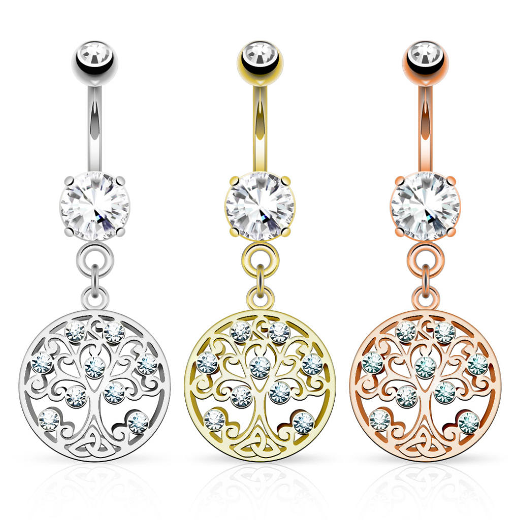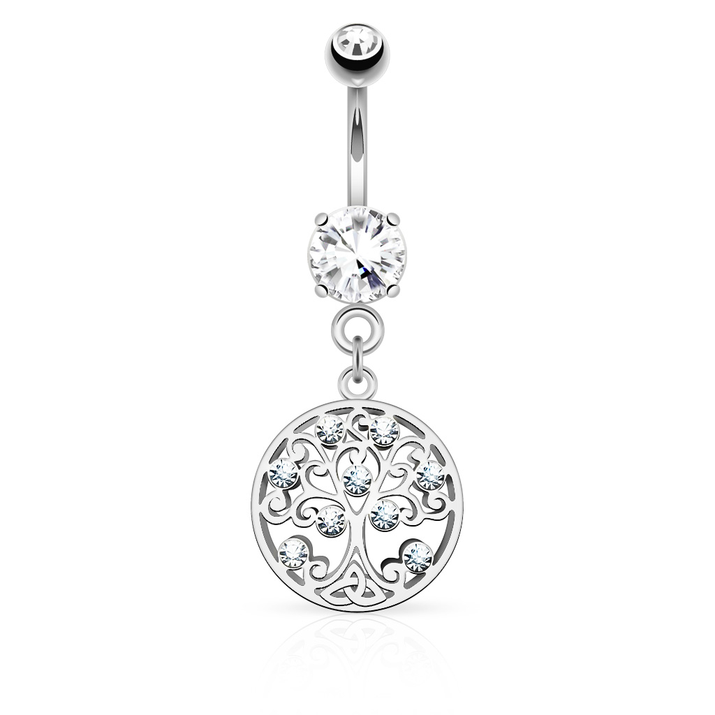Piercing de buric cu pietricele si pandativ copacul vieții