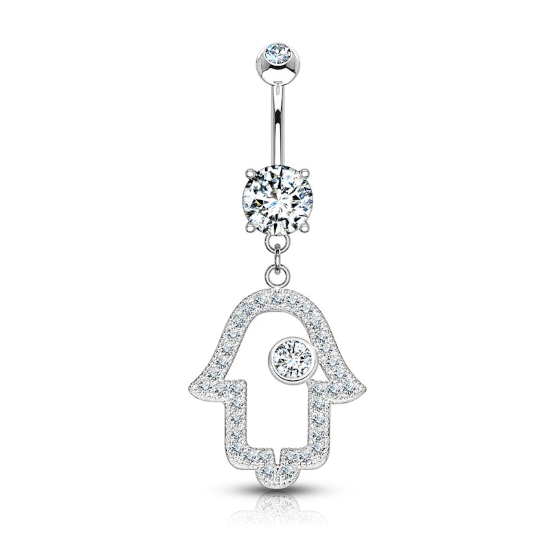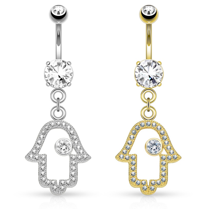 Nume: Piercing de buric cu pietricica in simbol hamsa
