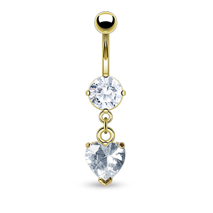 Piercing de buric placat cu aur cu pietricică colorata și pandativ în formă de inimă