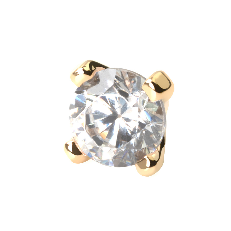 Vârf dermal din aur 14k cu piatră transparentă
