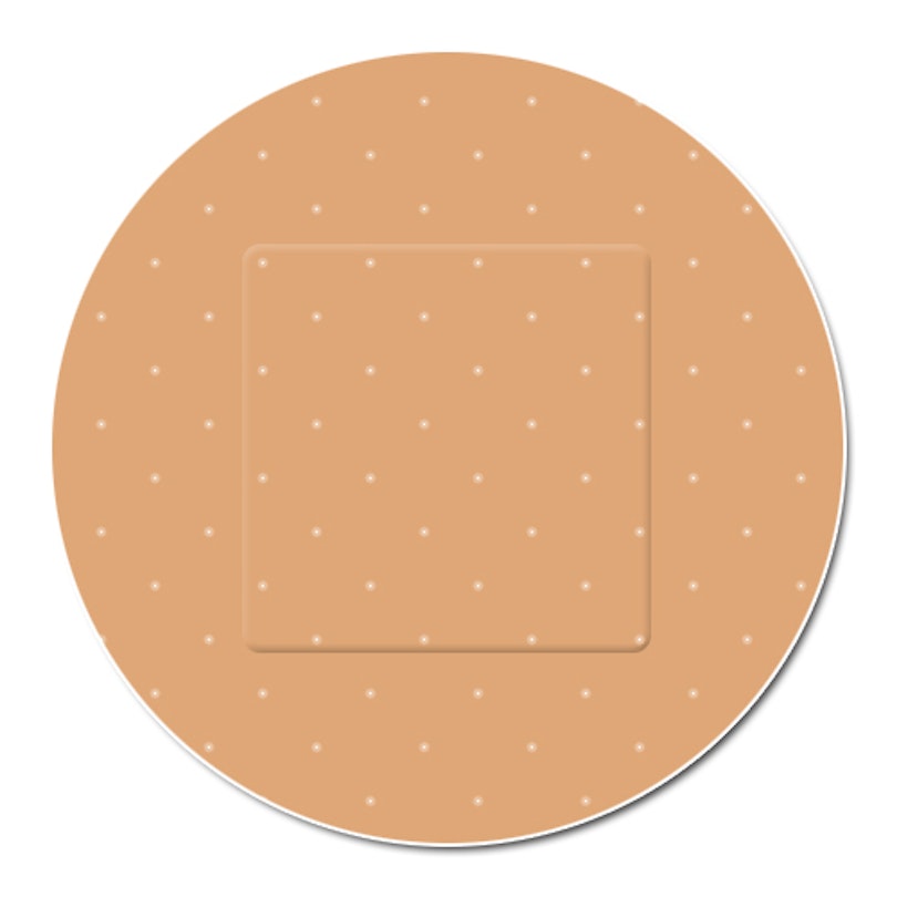Plasturele este prevăzut cu un tampon de bumbac care va absorbi eventualele fluide datorate rănii. Plasturele măsoară 22 mm în diametru, iar micul tampon din bumbac măsoară aproximativ 11 mm pe fiecare latură. Deci, plasturele este făcut pentru piercing-urile într-un punct, cum ar fi ancorele dermale sau skin diver-ele. Desigur, plasturele poate fi folosit și pentru alte piercing-uri, atât timp cât acestea pot fi acoperite de tampon.