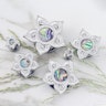 Dar este centrul florii de lotus ceea ce îl face atât de special, cum vine la pachet cu o frumoasă perlă prețioasă. Mama perlelor este un material natural creată de moluște ce acoperă scoica cu ea. Cum vorbim despre un material organic, este important să îți amintim că nu există două piese identice.