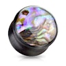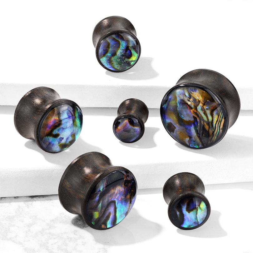 Plugul este făcut dintr-o bucată de lemn, deci nu are nici o parte liberă sau înfiletată care poate fi scoasă. În partea din față este o piesă din scoică. Din moment ce lemnul și scoicile sunt materiale organice, dacă vei comanda două piese nu vor fi identice. Mai ales scoica poate varia în aparență, cum venele și jocul de culori pot fi foarte diferite. Dar exact acest fapt le face unice.