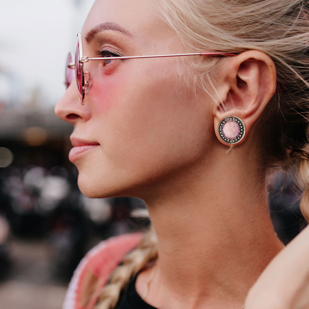 Nume: Plug ureche cu margine antichizată și piatră roz