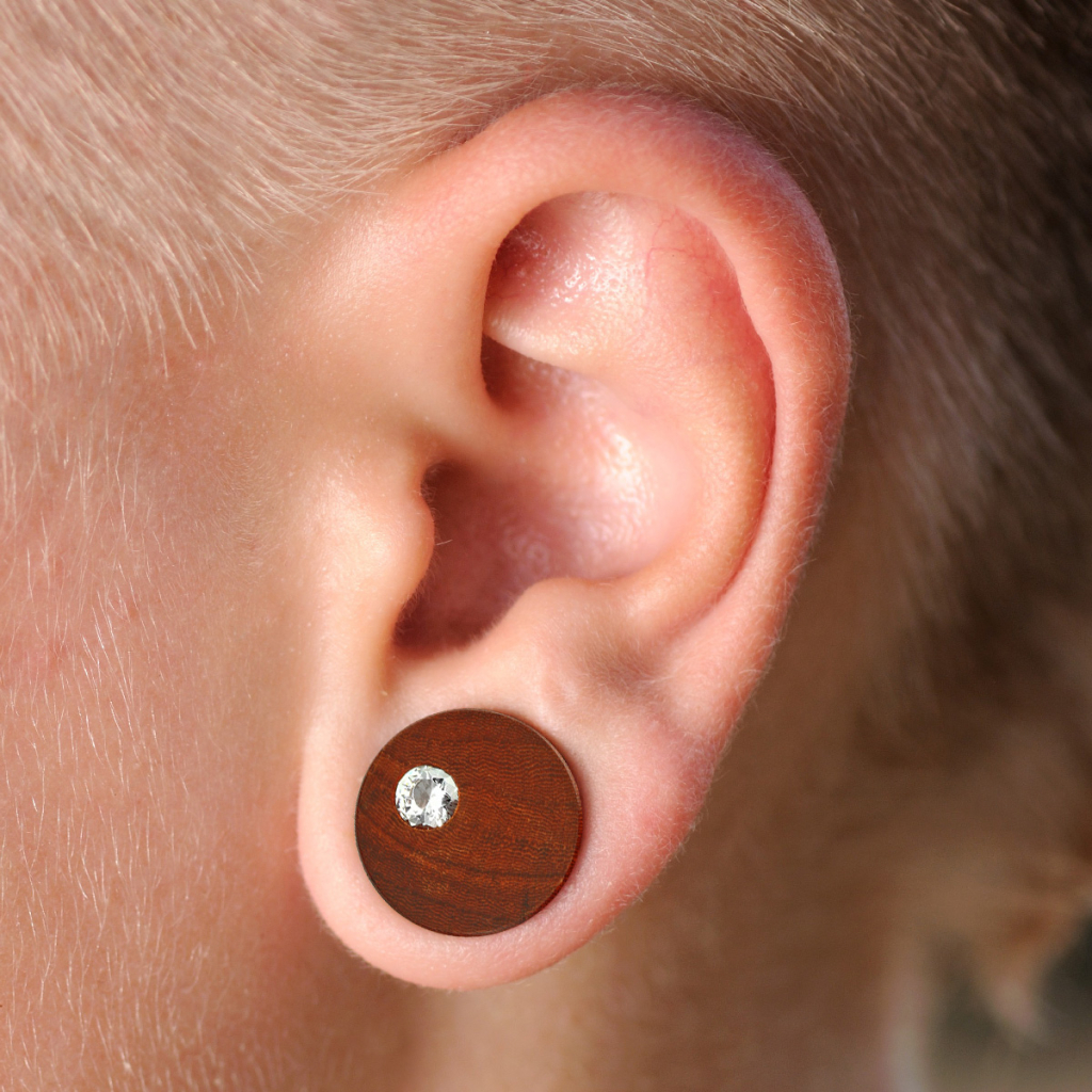 Plug ureche din lemn de mahon cu piatră