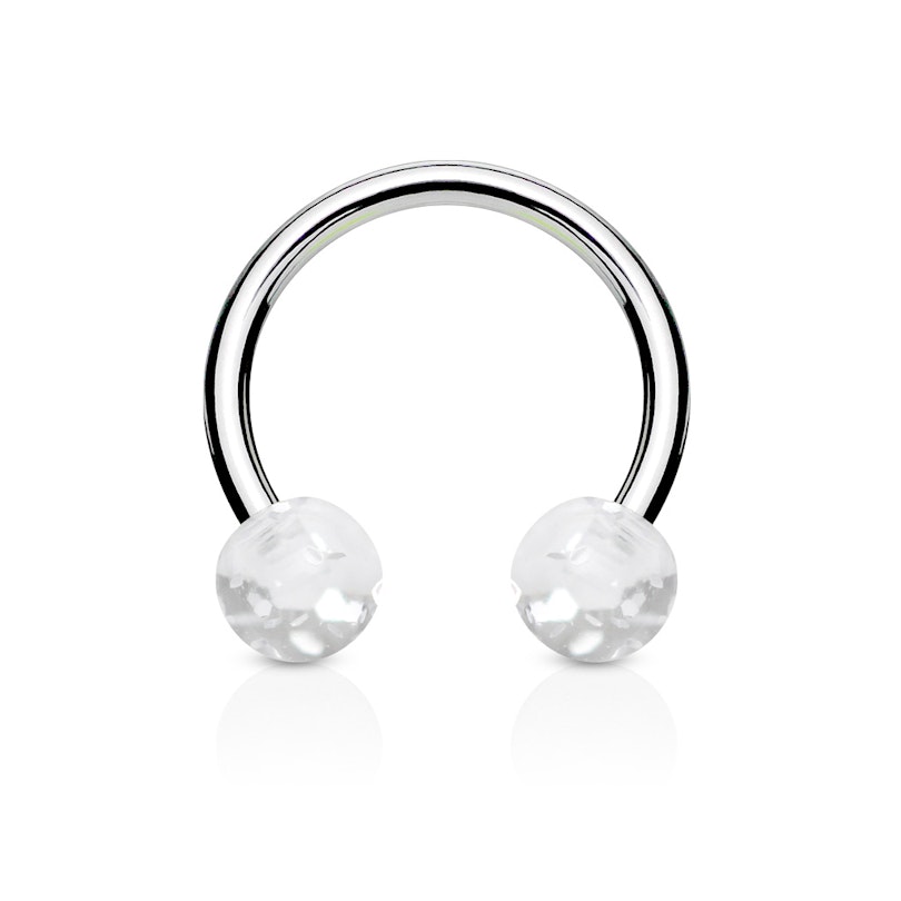 Această tijă circulară sau potcoavă este o bijuterie dublă cu bile din acril, decorate cu niște culori cu sclipici ce-i oferă un look unic. Vei putea să-l porți în diferite piercing-uri, de exemplu, ureche, sfârc, sprânceană și piercing de nas. Atâta timp cât mărimea este compatibilă cu piercing-ul tău, vei putea să-l porți.
