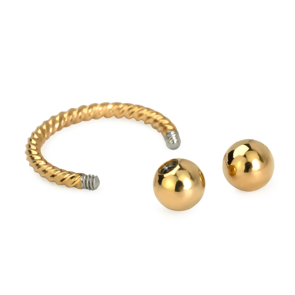 Această barbell circulară arată ca una normală, dar dacă te uiți mai îndeaproape, are un frumos detaliu care leagă o bilă la cealaltă. Bara arată precum o sfoară răsucită. Acest lucru oferă piesei un touch diferit și un look mai stylish - nu mai arată ca o barbell simplă.