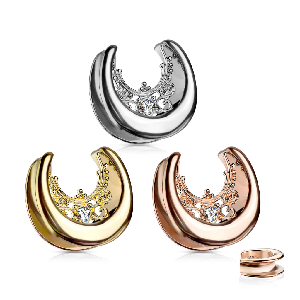 Poți cumpăra această saddle spreader în multiple mărimi și culori. Mărimea minimă de stretching de care ai nevoie pentru a purta cel mai mic model este de 10mm. Totuși chiar dacă diametrul stretchingului tău este mai mare, poți folosi cea mai mare mărime de 25 mm. Marginile saddle spreader-ului sunt curbate în interior, asigurând, astfel o bună prindere. Așadar, chiar dacă lobul urechii tale este mai mare, va ține capătul de jos al stretching-ului securizat.