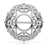 Bara are o lungime totală de 3/4 inches (19 mm), în timp lungimea stângă pentru piercing-ul de sfârc este 9/16 inches (14 mm). Scutul este demn de Regina Sheba, cu un design fantastic.