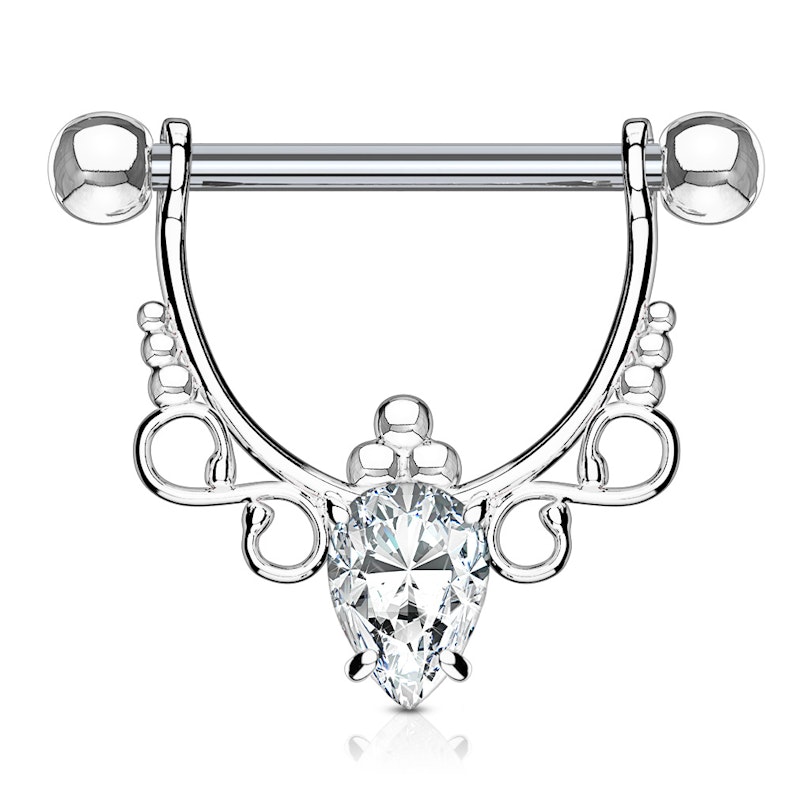 Nume: Scut de sân cu model filigran și piatră în formă de pară