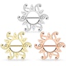 Bara este făcută din oțel chirurgical, cel mai răspândit material în industria piercing-urilor. Scutul cu vârfuri vălurite este făcut din cupru și acoperit cu un strat de rodiu ce îi oferă culorile extraordinare de auriu și argintiu.