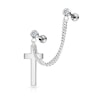 Un set frumos de bare cu pietre transparente și o cruce care atârnă conectate de un lanț dublu. Această bijuterie are un design extraordinar care îți permite să pui o bară cu piatră transparentă în helix și pe cealaltă în lob, lanțul urmărind forma urechii tale.