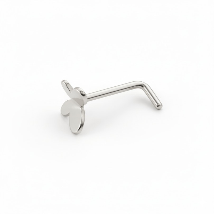 Studul de nas din titan cu fluture aduce un stop de joacă piercingului tău. Forma netedă de fluture se așază lejer pe piele și se potrivește ușor cu orice porți deja.