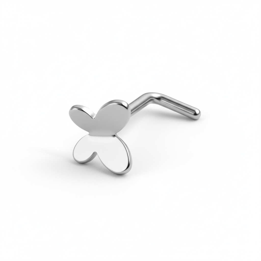 Studul de nas din titan cu fluture aduce un stop de joacă piercingului tău. Forma netedă de fluture se așază lejer pe piele și se potrivește ușor cu orice porți deja.