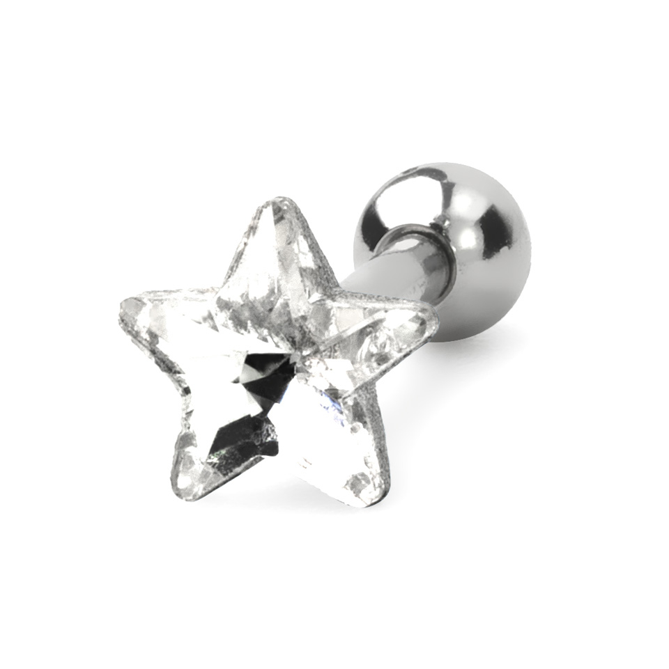 Ceea ce vezi în poză este un cercel simplu pentru piercing-uri de ureche, cu diferite modele. Alege-ți forma pietrei de zirconiu care decorează bijuteria: inimă, de stea sau de lacrimă. Ai la dispoziție următoarele mărimi: