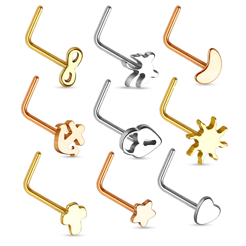 Acești studs sunt creați pentru piercing-urile de nas. Bara în formă de L, în unghiul potrivit de 90 de grade ce asigură că stud-ul nu va ieși din piercing. Are o lungime de 1/4 inches (6 mm) de la unghi până la vârf. Mărimea din design-ul din vârf diferă de la model la model.