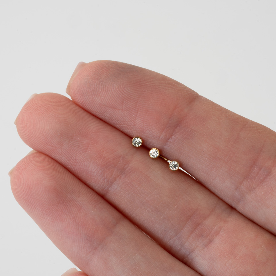 Stud-ul este disponibil într-o varietate de culori pe care o poți alege înainte de a adăuga produsul în coș. Poți folosi acest model dacă piercing-ul tău a fost făcut cu un pistol de piercing-uri din moment ce are un encartament de 20g (0.8 mm) și o lungime de aprox. 1/4 inches (7 mm).