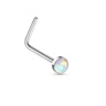 Când acest stud este în piercing-ul tău de nas, nu îi poți vedea culoarea, doar partea care înrămează piatra de opal. Stud-ul în formă de L, îndoit din mijloc într-un unghi de 90 de grade și ușor de pus sau de scos.