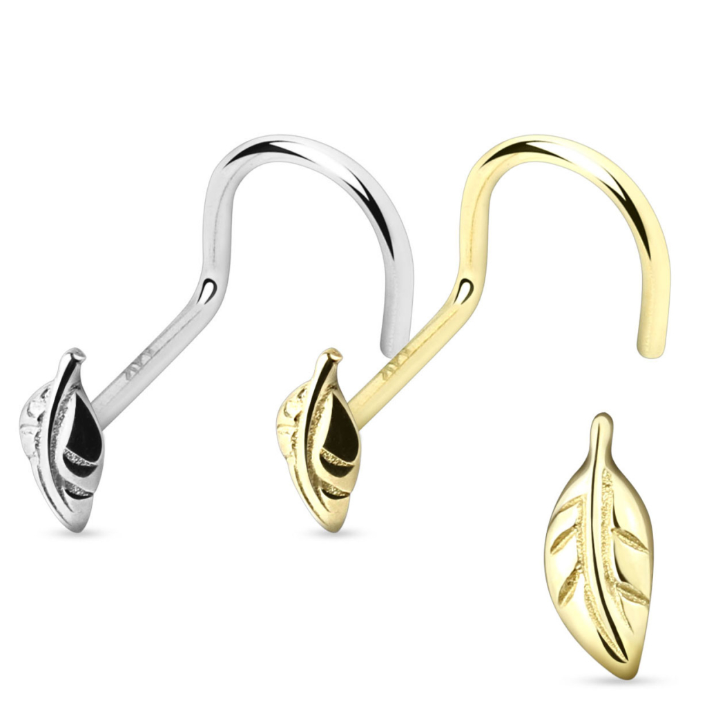 Nume: Șurub nazal din aur de 14 carate cu frunză