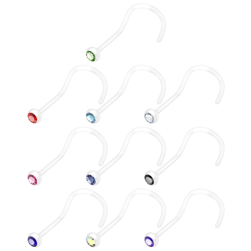 Dacă visezi la bijuterii piercing de nas care sunt și frumoase, și confortabile și folositoare în același timp, atunci deschide ochii mari! Ai găsit un șurub de nas din PTFE cu o piatră disponibilă în diferite culori. PTFE este un plastic foarte flexibil ce face șurubul incredibil de confortabil la purtare. În plus, PTFE este safe, deci îl poți folosi chiar dacă ești alergică la nichel.