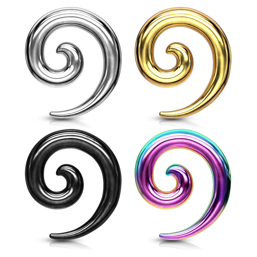 Poți alege culoarea acestui taper spirală în patru culori diferite. Una dintre ele este culoarea clasică argintie, desigur, cea mai iubiă. Dar poți încerca și ceva nou. Dacă ți-ar plăcea un taper care creează un contrast mare, culoarea negru este ideală pentru tine. Dacă ți-ar plăcea ca taperul tău să-ți ofere un look mai feminin și elegant, alege culoarea aurie. Și, nu în ultimul rând, modelul multicolor este cea mai bună alegere dacă preferi bijuteriile colorate.