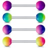 Piercingul pe care îl poți vedea în fotografie este o tijă dreaptă, alcătuită din otel chirurgical, cu câte o bilă în fiecare din extremități. Ceea ce impactează este faptul că bilele au o îmbrăcăminte de cauciuc, de niște culori care nu trec neobservate. Poți alege culorile bilelor în funcție de gusturile tale: de exemplu, albastru și verde sau roz și galben. Toate modelele au o grosime a tijei de 1.6mm și o lungime de 16mm. Ambele bile se pot deșuruba, așa că, dacă vrei să le porți pe o tijă mai scurtă, nimic mai simplu.