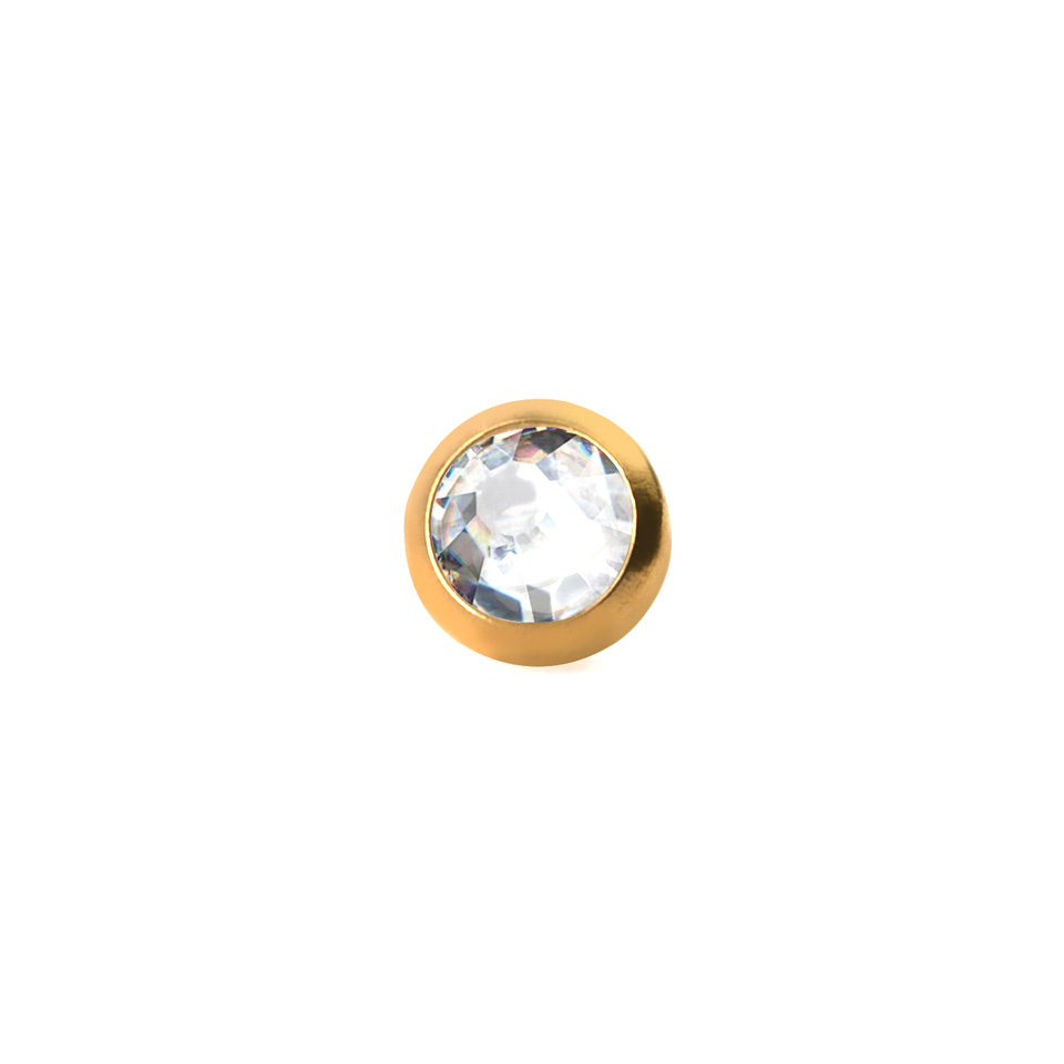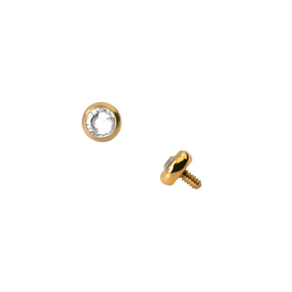 Acest cerc cu piatră încrustată pentru ancora dermală consistă dintr-un mic disc plat cu o piatră de zirconiu transparentă.