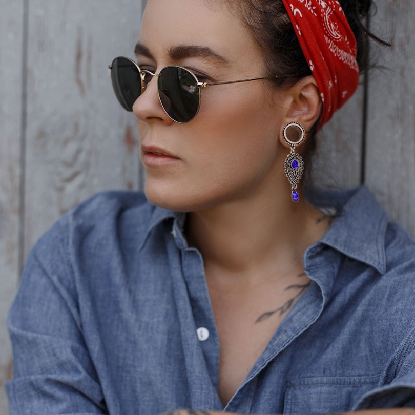 Poți folosi tunelul dacă ai o un ecartament de ureche între 2g și 5/8 inches (6 mm și 16 mm), ambele incluse. Tunelul este făcut din oțel chirurgical și are un cercel din alamă în față. Pandantivul este de asemenea făcut din alamă.