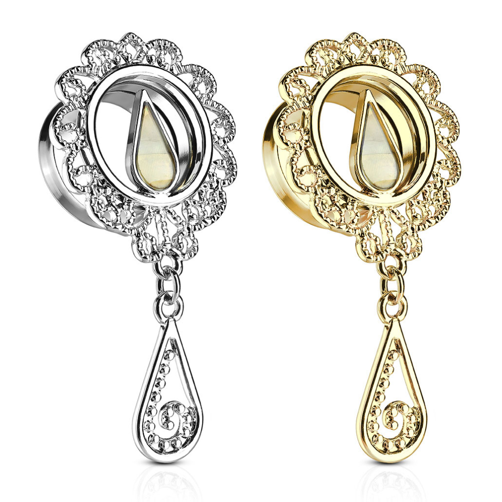 Tunelul pe care îl vezi în imaginea alăturată în două ediții: un model în culoare argintie sau aurie. Sunt 100% identice exceptând culoarea. Ambele sunt disponibile în șase mărimi care măsoară de la 2g până la 6 mm la 16 mm. Mărimile dopului și întreaga piesă se modifică proporțional în funcție de dimensiunea indicatorului selectat.