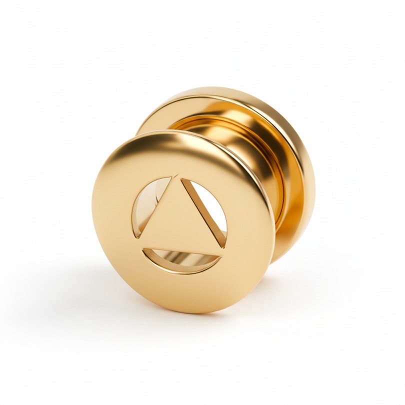 Tunelul cu triunghi păstrează un vibe curat, modern și puțin surprinzător. Decupajul geometric dă urechilor tale cu stretching un upgrade rafinat fără să exagereze.