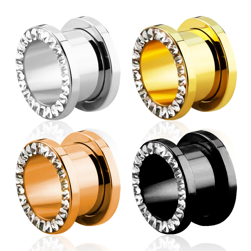 Acesta este un tunel frumos decorat cu pietre pe margine, sigilat cu un strat transparent ce previne căderea pietrelor. Suflarea va securiza pietrele lipite dacă faci baie sau duș. Întregul tunel este făcut din oțel chirurgical, unde șurubul robust și sigur din spate oferă confort la purtare. Inserarea sau scoaterea este extrem de ușoară; o vei face cu ochii închiși.