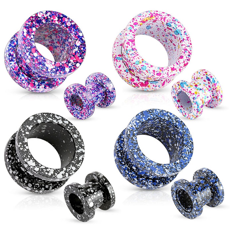Acest tunel este perfect pentru tine dacă ești înnebunită după culori vii și expandere de ureche. Este făcut din oțel chirurgical și este disponibil în diferite mărimi între 8g și 5/8 inches (3 mm la 16 mm). Designul acestui tunei este inspirat din picăturile de vopsea făcute cu o perie, toate în multiple combinații de culori fresh. Tunelul este dublu evazat ce îl va securiza în lobul urechii. Are un diametru interior de 1/4 inches (6 mm), cu un diametru total de 7/16 inches (10.5 mm).