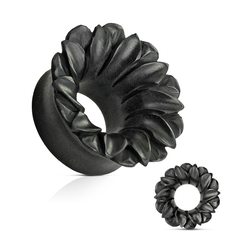Acest tunel negru cu floare în partea din față este făcut din lemn organic, care se adaptează corpului tău excelent. Este cioplit în forma unei flori de lotus, un frumos design pentru lobul urechii tale. Acest tunel este disponibil în diferite mărimi de la 1g (6.5 mm) până la 14 mm. Când îți lărgești piercing-urile, este normal să simți puțină durere sau uscăciune, deci îți recomandăm să folosești lube sau niște Holey butt'r pentru gaura ta. Lube va ajuta să inserezi bijuteria în gaura din ureche, în timp ce Holey butt'r este un produs de îngrijirea de după care previne uscăciunea și crăpăturile. În plus, folosind aceste produse va scădea riscul unei infecții.