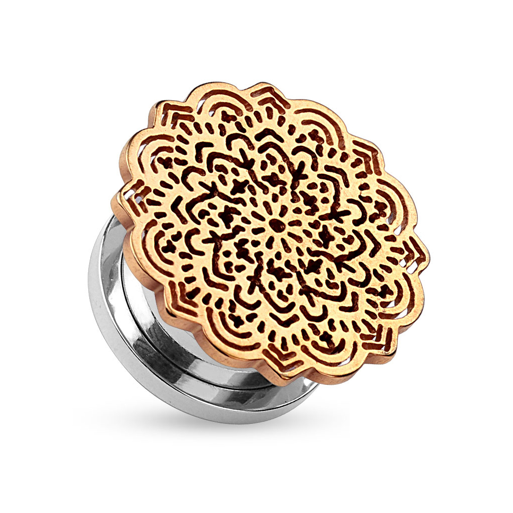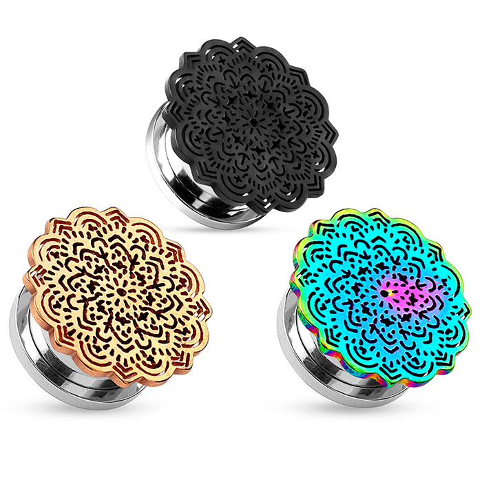Poți alege dintre această frumoasă și detaliată mandală din diferite culori, clasice sau vibrante. Când tunelul este în lobul urechii, mandala va fi singura parte vizibilă. Spatele este făcut din oțel chirurgical care poate fi deșurubat pentru o inserție și extracție ușoară. Acest tunel fabulos este disponibil în diferite mărimi, deci alege-l pe cel care se potrivește găurii din urechea ta înainte de a-l adăuga coșului tău de cumpărături și apoi finalizează cumpărăturile.