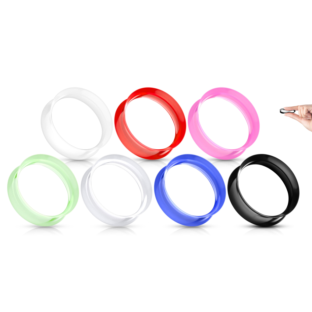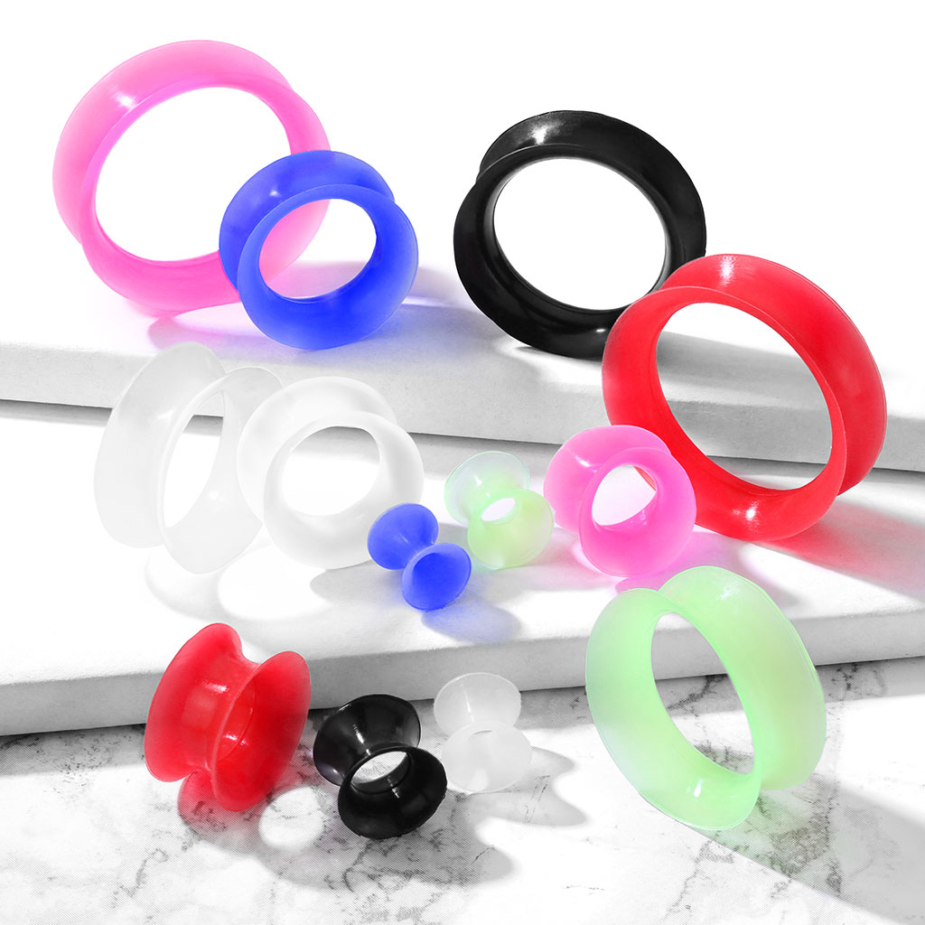 Dacă ai găuri lărgite în ureche, aruncă o privire la aceste tuneluri. Aceste tuneluri sunt făcute din silicon și sunt foarte ușoare pe care abia le vei observa când le porți. Motivul pentru care sunt așa de ușoare este că, în primul rând, sunt făcute din silicon. Dar mai există un motiv, care este să compari alte piese de silicon, cantitatea de silicon în aceste tuneluri fiind mult mai mică, făcându-le mai flexibile decât altele. Alege tunelul tău din 11 mărimi de găuri diferite și 10 culori diferite din meniul alăturat pozei.