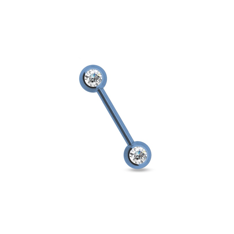 Tija are două bile mari de 6 mm. Nu este un piercing de sfârc discret deoarece bilele vor atrage atenția a oricărui le vede. În plus, bilele din un cristal încrustat. Pietrele rotunde au tăietura de diamant, deci vor străluci puternic când lumina le atrage.