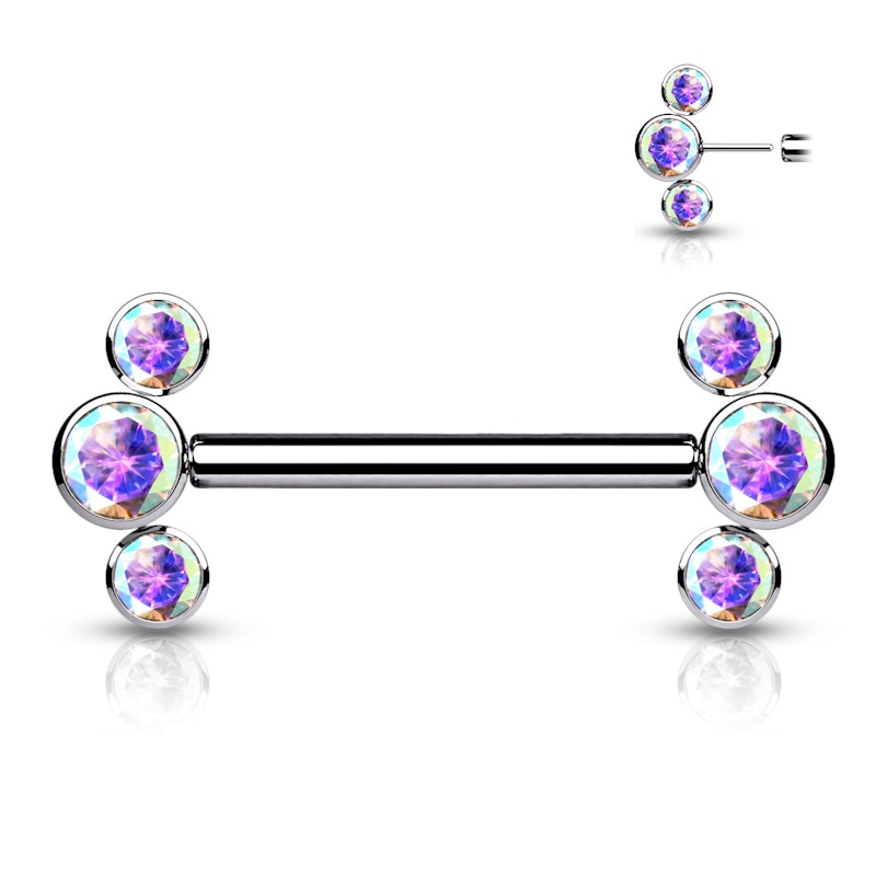 Nume: Barbell de sân fără filet cu 3 pietre de zirconiu la capete.
