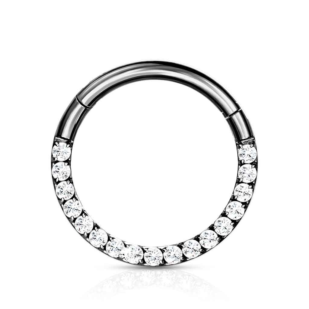 Cercel din titan cu balama și rând de pietre.